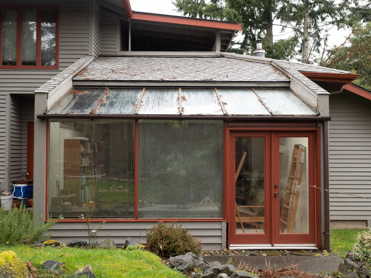 And as can be seen, there are no other short parapet walls on the existing home. It all had to go, and when the owners said, "We actually only use the old part of the sunroom; the added room shape and location of access ways actually prevents a good furniture layout," Will realized their best cost solution might be to not add-back more space, but to just remove the badly done work, return it to the original architect's vision. The owners smiled, and agreed.