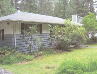 Here is the classic 1940s War house. Simple rectangular shape, no roof overhangs, plain Cedar lap siding and standard trim. They were built this way because the "war was on," and everything needed to be lower cost. Everybody pitched in - that was America, back then. There is the old front door with its abbreviated porch roof, which in Seattle rains didn't do much. And the very plain left end of the home, where the new entry & porch roof was built, is so nicer now.